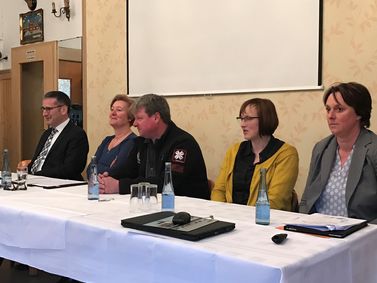Die Ortsgemeinde Schenkelberg plant den Neubau eines Dorfgemeinschaftshauses, denn spätestens mit der Aufgabe des Hotels Stadt Berlin fehlen Räume für Geselligkeit und Vereinsleben. Da die Gemeinde diesen Bau nicht aus eigener Kraft schaffen kann, hat sich Ortsbürgermeisterin Carola Bruns 2017 hilfesuchend an Hering gewandt. "Ein Ankauf und Modernisierung des Hotels Stadt Berlin wäre ein unkalkulierbares Risiko. Daher ist ein Neubau zwischen Ortsausgang und Friedhof die sinnvollste Möglichkeit", erläuterte die Ortschefin das Vorhaben bei einem Besuch Herings in der Gemeinde (Bild oben), der die Gelegenheit nutzte, sich das Projekt vorstellen zu lassen und das Gelände anzuschauen.