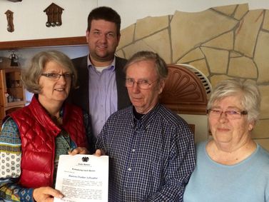 Bei ihrem Besuch in Mörlen machte die SPD-Bundestagsabgeordnete Gabi Weber auch Station beim heimischen SPD-Ortsverein. Im Beisein von Thomas Mockenhaupt, SPD-Vorsitzender in Mörlen, lud die Abgeordnete Dieter Schuster und seine Frau Roswitha zu einer viertägigen Fahrt nach Berlin ein.