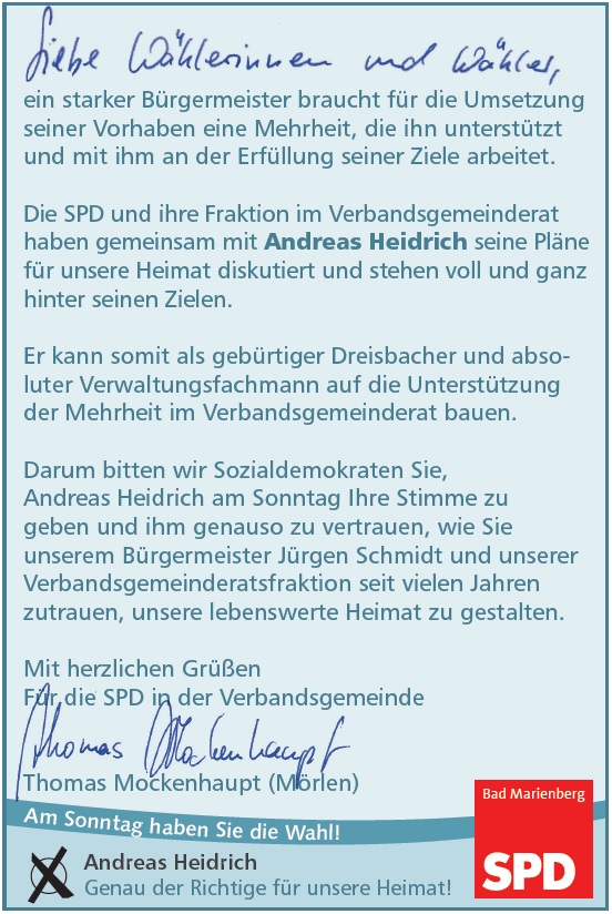 Wahlaufruf der SPD in der VG Bad Marienberg